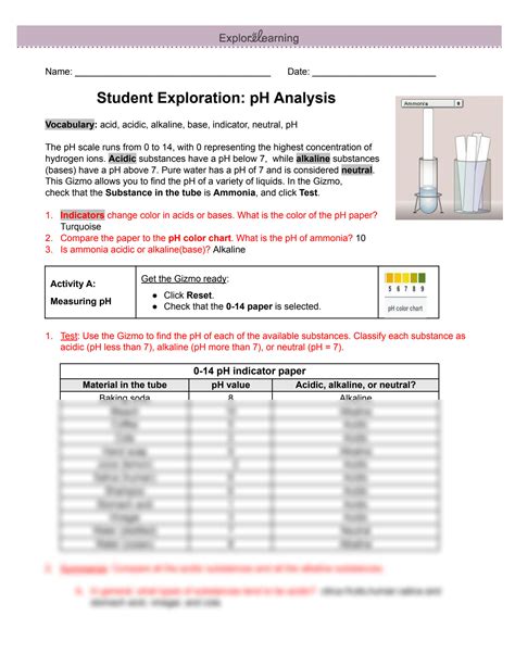 Read Online Student Exploration Ph Analysis Answer Sheet Reader