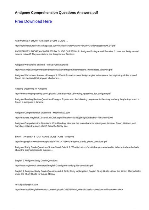 Read Online Questions And Answers To Antigone 10 Grade PDF online is a convenient and frugal way to read Questions And Answers To Antigone 10 Grade you love right from the comfort of your own home. Yes, there sites where you can get PDF "for free" but the ones listed below are clean from viruses and completely legal to use.